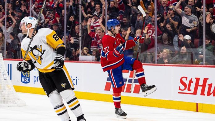 Canadiens LineupForward linesCole Caufield – Nick Suzuki – Sean Monahan Evgenii Dadonov – Christian Dvorak – Brendan Gallagher Jonathan Drouin – Kirby Dach – Josh Anderson Juraj Slafkovsky – Jake Evans – Mike Hoffman Defence pairingsKaiden Guhle – David Savard Arber Xhekaj – Chris Wideman Jordan Harris – Johnathan Kovacevic GoaltendersSam Montembeault – Cayden Primeau ScratchesRem Pitlick, Michael Pezzetta, Jake Allen (parental leave) InjuriesCarey Price (knee), Paul Byron (hip), Joel Edmundson (back), Logan Mailloux (shoulder), Emil Heineman (finger), Mike Matheson (abdominal strain), Joel Armia (upper-body) Game ReportMaybe the answer is to leave it to the kids! We have written about the Canadiens’ difficulty so far this season to create offence. And they were headed down that barren path again after two periods against the Pittsburgh Penguins. Just two high-danger scoring chances were registered in the first 40 minutes of tonight’s hockey game by the Montreal Canadiens. That’s a statistic which is not going to win many hockey games. But when they came out in the third period, the Habs didn’t look deflated. Nick Suzuki scored his second goal of the season, oddly it was once again on the wraparound. Casey DeSmith had been shaky throughout the contest and finally a Canadiens was able to take advantage. One benefit of low expectations for the Canadiens this season is that they will be seeing the opposition’s backup goalie on many nights. This MTL vs. PIT goaltending matchup wasn’t exactly Carey Price against Marc-Andre Fleury. Sam Montembeault had his adventures too on this night, particularly with respect to rebounds. The Penguins seemed a little stunned by the Suzuki goal one minute into the third period. And they didn’t respond well. Much of their weak third period had to do with the pairing of Kaiden Guhle and David Savard. The 20-year-old Guhle led the Canadiens in ice-time just 17 seconds shy of 25 minutes. Guhle was the best Canadien by far enroute to his first two points in the NHL while limiting the scoreless Sidney Crosby to just one shot on goal. That set the stage for the comeback to be complete with Cole Caufield scoring the tying goal and Kirby Dach potting the game-winner in overtime. Again, the kids came to the rescue. Dach’s goal was the Canadiens’ first power-play goal of the season. Up NextAs a final note, it was Sean Monahan who setup Dach for the game-winning goal. The two newcomers to the Canadiens have shown considerable chemistry so far. Perhaps the head coach has recognized his mistake, splitting the pair up to start the game. The Canadiens will continue their four-game homestand on Thursday night as they host the Arizona Coyotes.