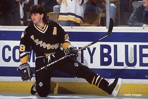 21 Feb 1996: Jaromir Jagr of the Pittsburgh Penguins kneels on the ice during a 6-3 loss to the Buffalo Sabres at the Aud in Buffalo, New York. Mandatory Credit: Harry Scull/Allsport