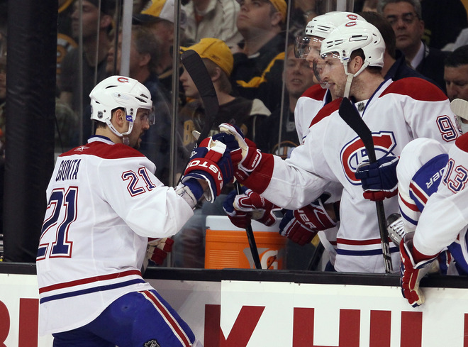 in Game One of the Eastern Conference Quarterfinals during the 2011 NHL Stanley Cup Playoffs at TD Garden on April 14, 2011 in Boston, Massachusetts. The Montreal Canadiens defeated the Boston Bruins 2-0.