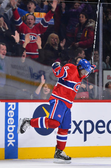 P.K. Subban comemora seu gol contra Bruins (Foto por Francois Lacasse/NHLI via Getty Images)